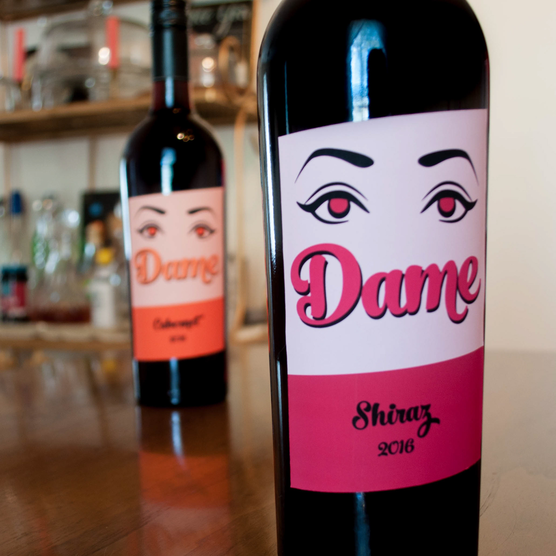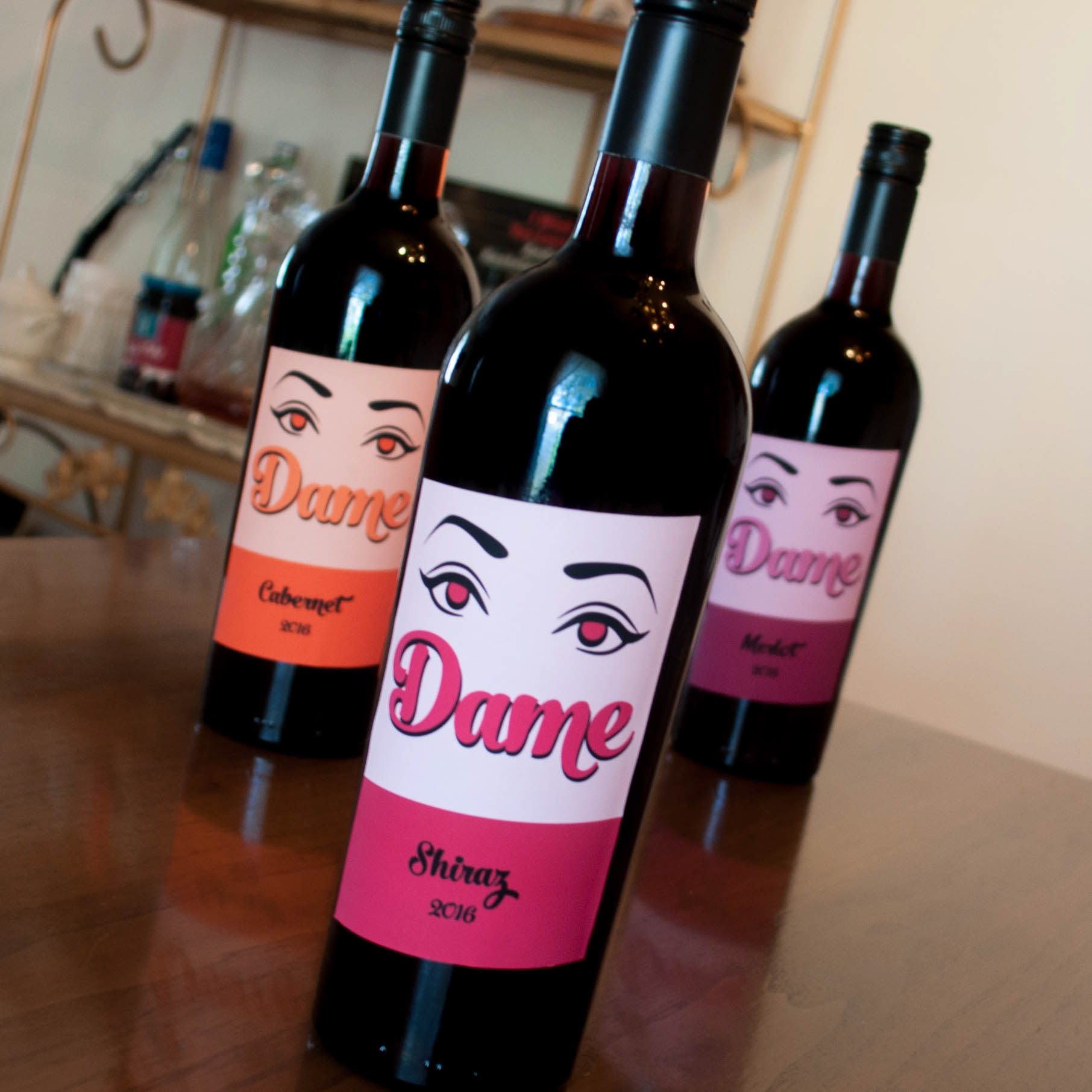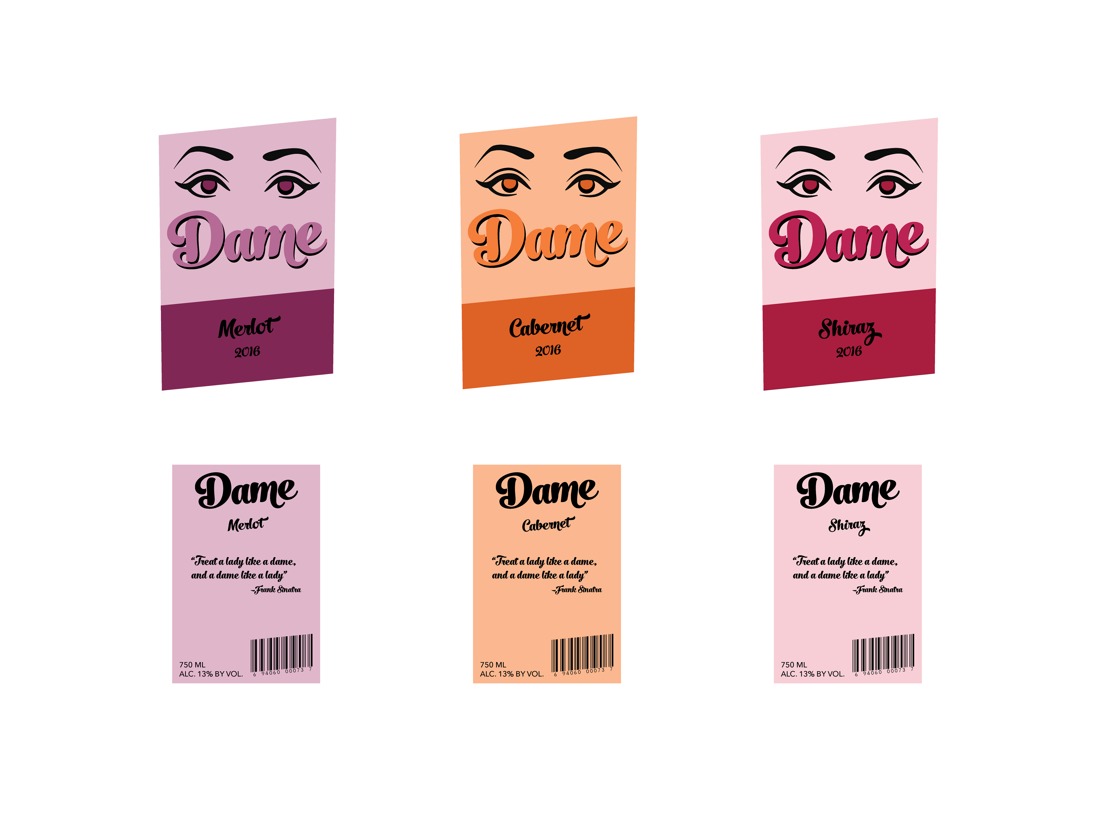 Retro inspired wine labels designed with inviting eyes and bold colors.